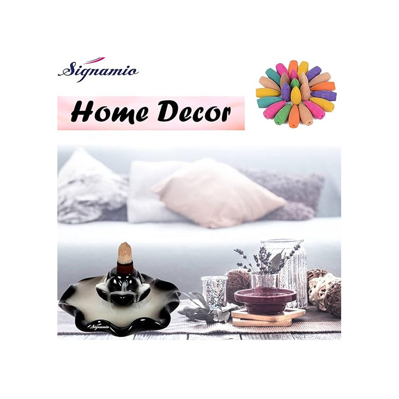 Gujju Dukan Lotus Bowl Ceramic Backflow Smoke Incense Holder with 20 Piece Incense Cones Package Content - One Ceramic Backflow Incense Holder and 20 Cones High Quality Ceramic Incense Holder. Light the Backflow cone and Place it on the Holder. Wait for 1-2 mins, and let the magic of the cone happen! With the special Properties of the cone it will give the smokey waterfall look to the Holder This magnificent concept of Ceramic backflow is as good as to refresh your mood and to feel calm. You can use a Backflow cone or Incense stick as per your desire. This is not resin and the beauty of the backflow burner just reaches the height when the smoke touches the ground Handcrafted In India This makes the perfect housewarming item for any home, backflow incense burner comes with a box of 20 back-flow incense cones गुज्जू दुकान लोटस बाउल सिरेमिक बैकफ्लो स्मोक इनसेंस होल्डर 20 पीस इनसेंस कोन के साथ पैकेज में शामिल - एक सिरेमिक बैकफ्लो इनसेंस होल्डर और 20 कोन उच्च गुणवत्ता वाला सिरेमिक इनसेंस होल्डर। बैकफ्लो कोन को जलाएं और इसे होल्डर पर रखें। 1-2 मिनट तक प्रतीक्षा करें, और कोन का जादू होने दें! कोन के विशेष गुणों के साथ यह होल्डर को स्मोकी वाटरफॉल लुक देगा सिरेमिक बैकफ्लो की यह शानदार अवधारणा आपके मूड को तरोताजा करने और शांत महसूस करने के लिए उतनी ही अच्छी है। आप अपनी इच्छानुसार बैकफ्लो कोन या अगरबत्ती का उपयोग कर सकते हैं। यह राल नहीं है और बैकफ्लो बर्नर की सुंदरता तब चरम पर पहुँचती है जब धुआँ ज़मीन को छूता है भारत में हस्तनिर्मित यह किसी भी घर के लिए एकदम सही गृह प्रवेश आइटम बनाता है, बैकफ्लो इनसेंस बर्नर 20 बैक-फ्लो इनसेंस कोन के एक बॉक्स के साथ आता है