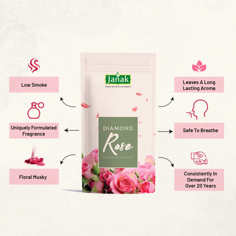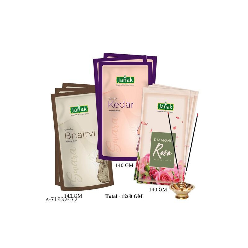 Combo with Long Lasting Bhairvi-Bihag-Diamond Rose Pack of 9 🌺 Bhairvi - Bihag - Diamond Rose | Pack of 9 Best Incense Sticks By Janak Perfume | A Gujju Dukan Product Indulge your senses with the soulful aroma of Bhairvi, Bihag, and Diamond Rose – a trio of premium incense sticks inspired by Indian classical beauty and floral harmony. This combo pack of 9 delivers a rich, long-lasting fragrance experience perfect for daily rituals, relaxation, and spiritual ambience.
